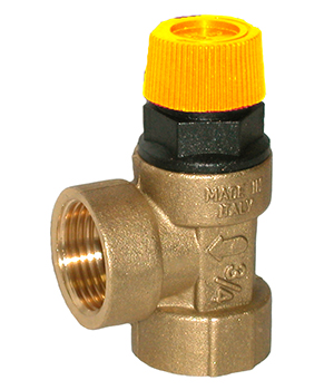 Valvola limitatrice di pressione per impianti solari a membrana Serie V915 a taratura fissa con attacch FF, disponibile in varie tarature
