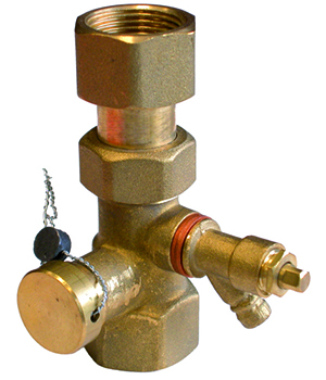Valvola Easy-K per collegamento vasi d'espansione: semplifica la sostituzione del vaso senza svuotare l'impianto, cavo per piombatura anti manomissione.