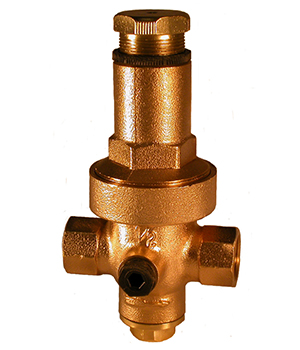 Riduttore di pressione in ottone filettato FF, con funzionamento a pistone e sistema di compensazione dalla pressione a valle, sede in acciaio inox.